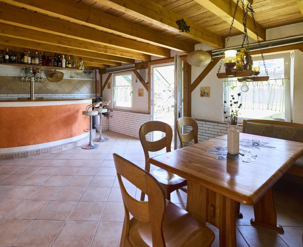 1 Raum zur besonderen Verfügung mit Tageslicht – ausgebaut als Kellerbar mit Zugang zum Garten