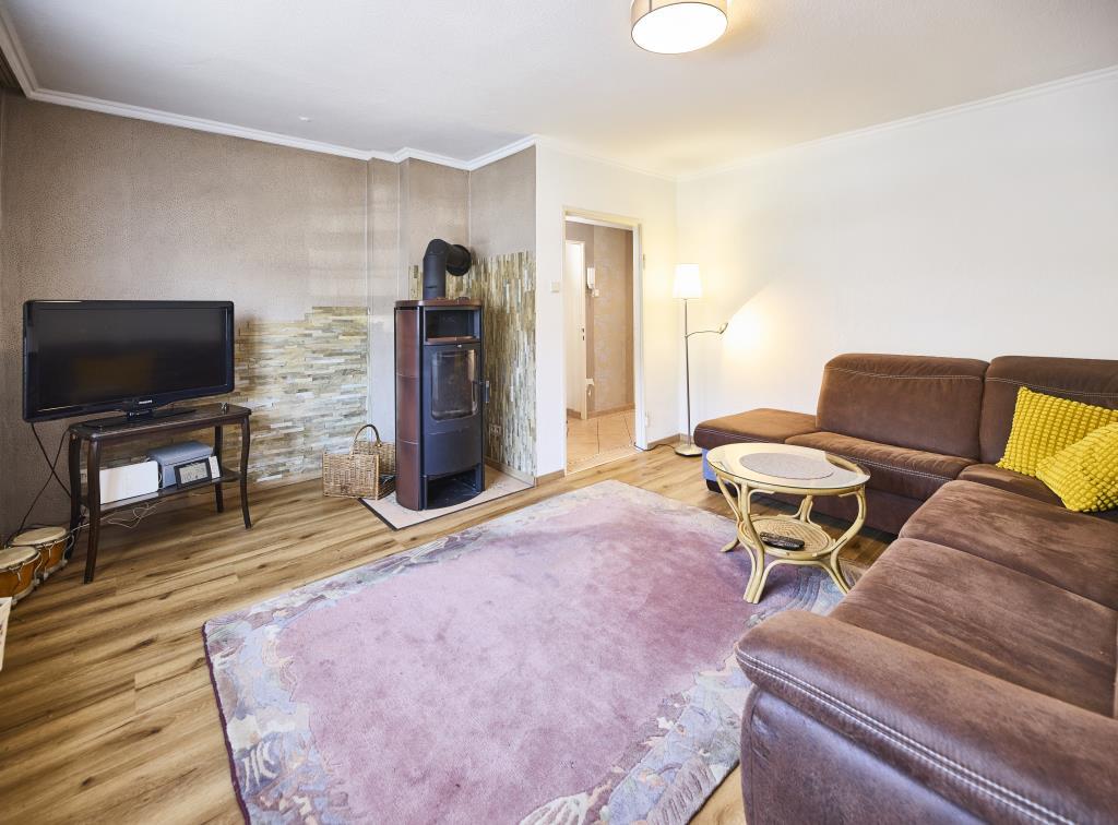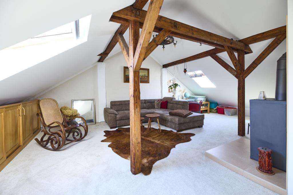ausgebaut – gemütlicher Raum mit Kaminofen